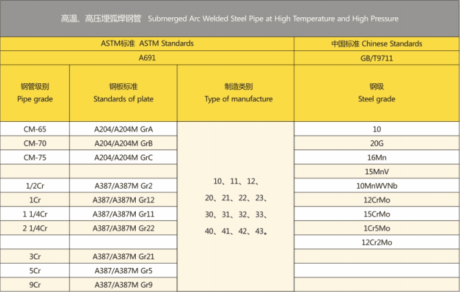高溫、高壓埋弧焊鋼管產(chǎn)品標(biāo)準(zhǔn)及材質(zhì)范圍