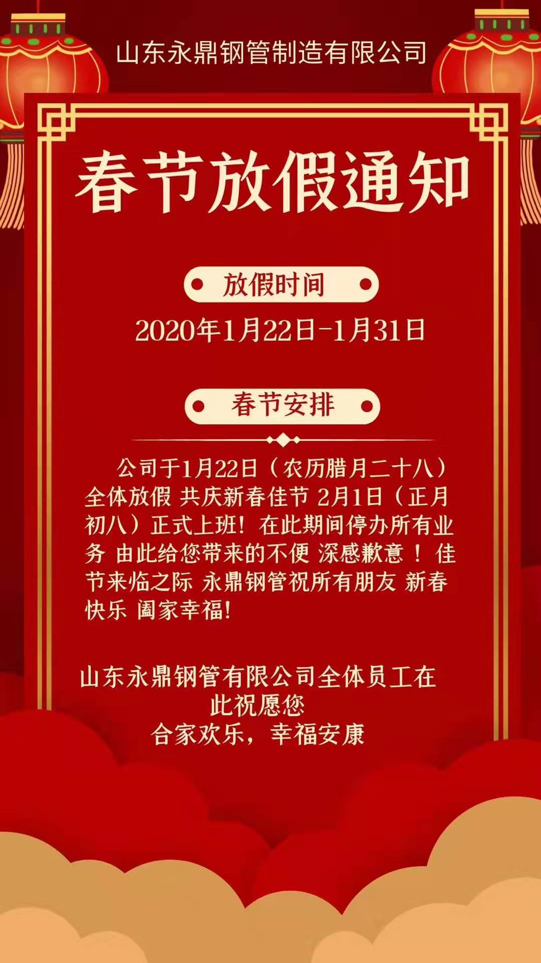 山東昌衡信德鋼管2020年春節放假通知